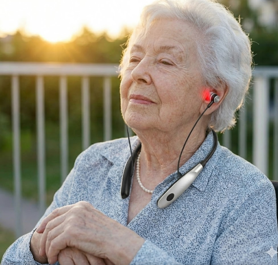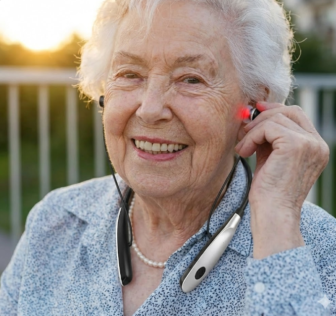 The earbuds deliver a safe 670nm red-light wavelength through the ear canal — the thinnest path to the temporal lobes. This light boosts ATP (energy) production in brain cells, improving clarity, memory, and focus over time.