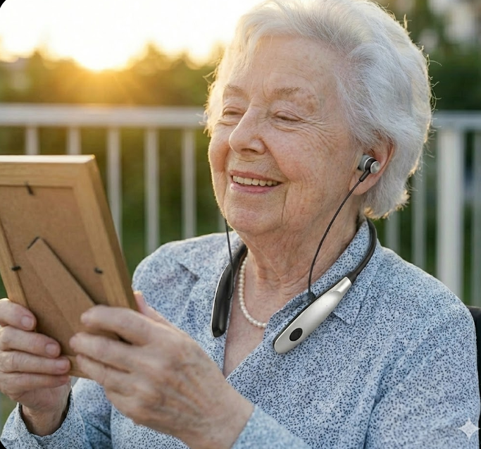 Now, every afternoon, they sit outside wearing their NeuroClear™ devices—smiling, talking, and laughing like they used to. No fear. No fading. Just two people finding their way back to each other.